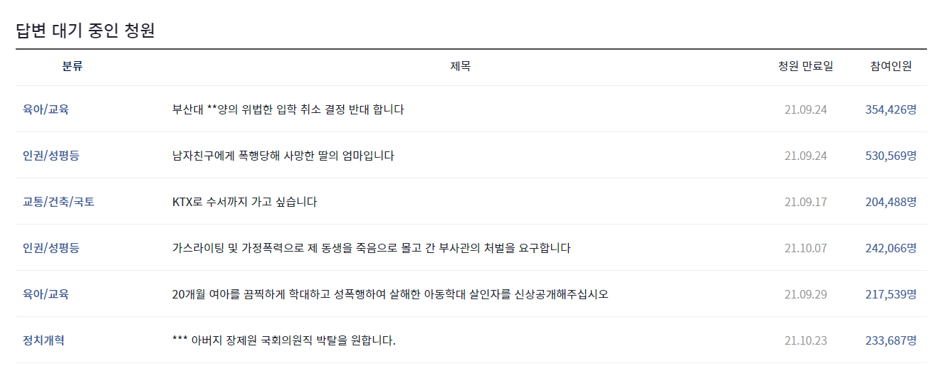 나머지 내용들은 청와대 국민청원홈페이지에 직접 접속 하셔서 확인을 하시는게 좋을 것 같습니다.