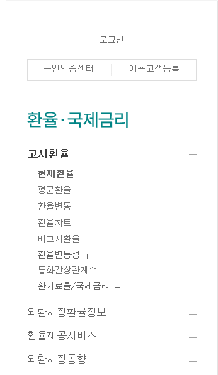 왼쪽을 보시면 현재환율로 선택되어 있으실텐데 세번째에 있는 환율변동을 클릭하시기 바랍니다.