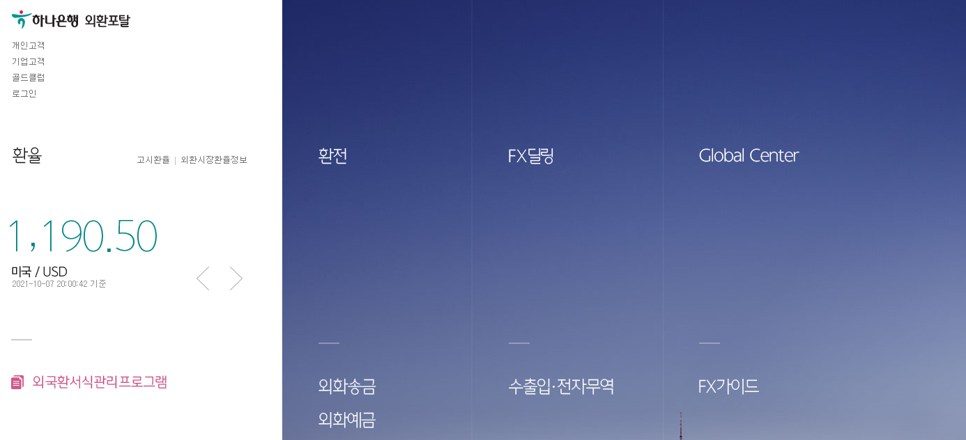 제가 일자별 과거 환율조회를 했던 방법을 설명드리자면 먼저 하나은행 홈페이지에 접속해주시기 바랍니다.