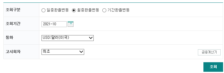 만약에 9월, 8월의 환율을 조회하고 싶으시면 월을 바꾸시면 되고 년도를 바꾸고 싶으시면 년도 좌우에 있는 화살표 버튼을 클릭하시면 됩니다.