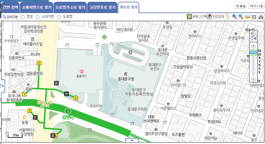 지도로 찾기를 클릭하면 지도가 나오게 되고 지도를 통해서 지역을 선택할 수 있습니다.