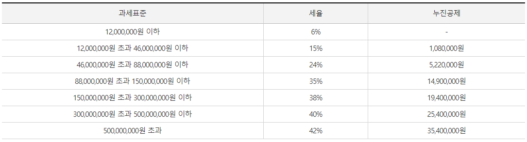 먼저 종합소득세율표입니다.