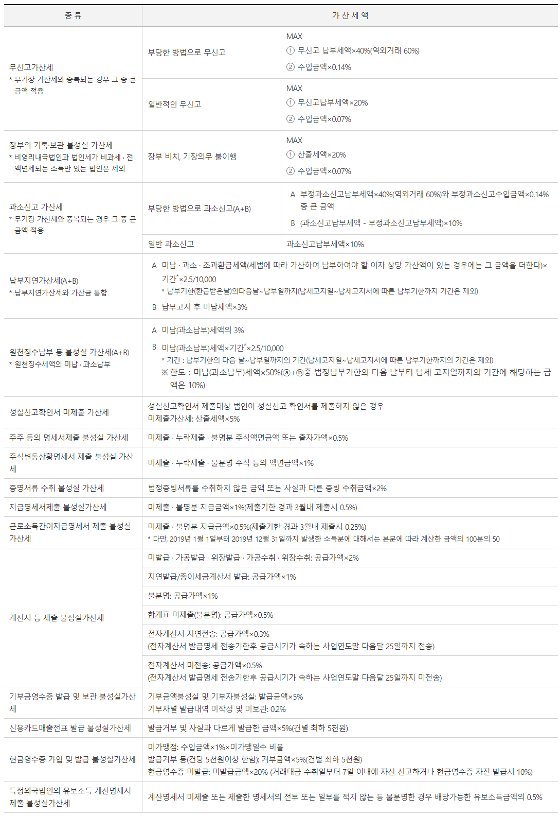 마지막으로 참고하시라고 법인세 가산세 표 첨부해드리겠습니다.