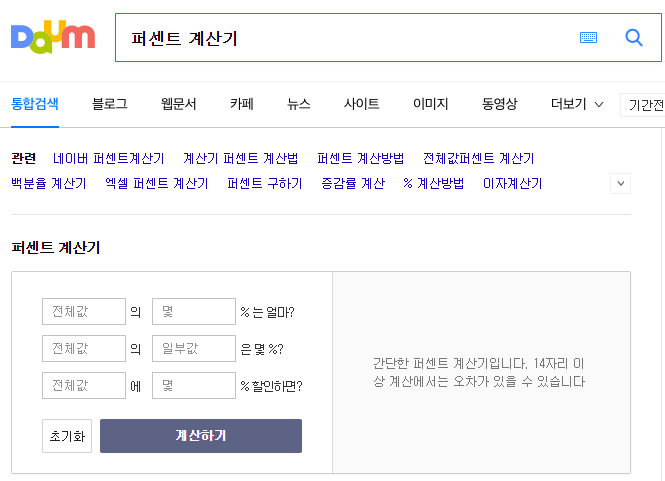 먼저 다음 홈페이지 검색창에 퍼센트 계산기라고 검색하는 것입니다.