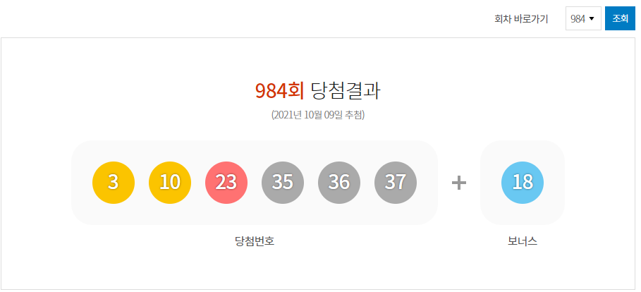 오른쪽 상단을 보시면 회차 바로가기가 보일 것입니다. 회차를 변경하신 후 조회 버튼을 클릭하시면 변경한 회차의 당첨번호를 확인할 수 있습니다.