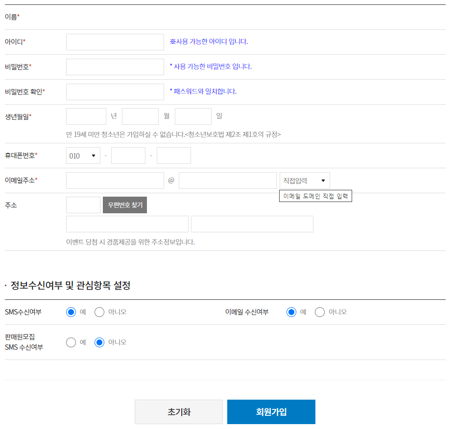 하신 후 회원가입 버튼을 클릭하시면 쉽게 가입이 가능합니다.