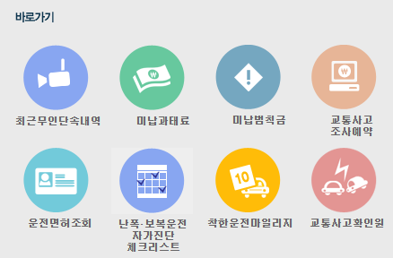 홈페이지에 접속하시면 교통 범칙금, 과태료, 운전면허와 관련된 메뉴들이 보일 것입니다.