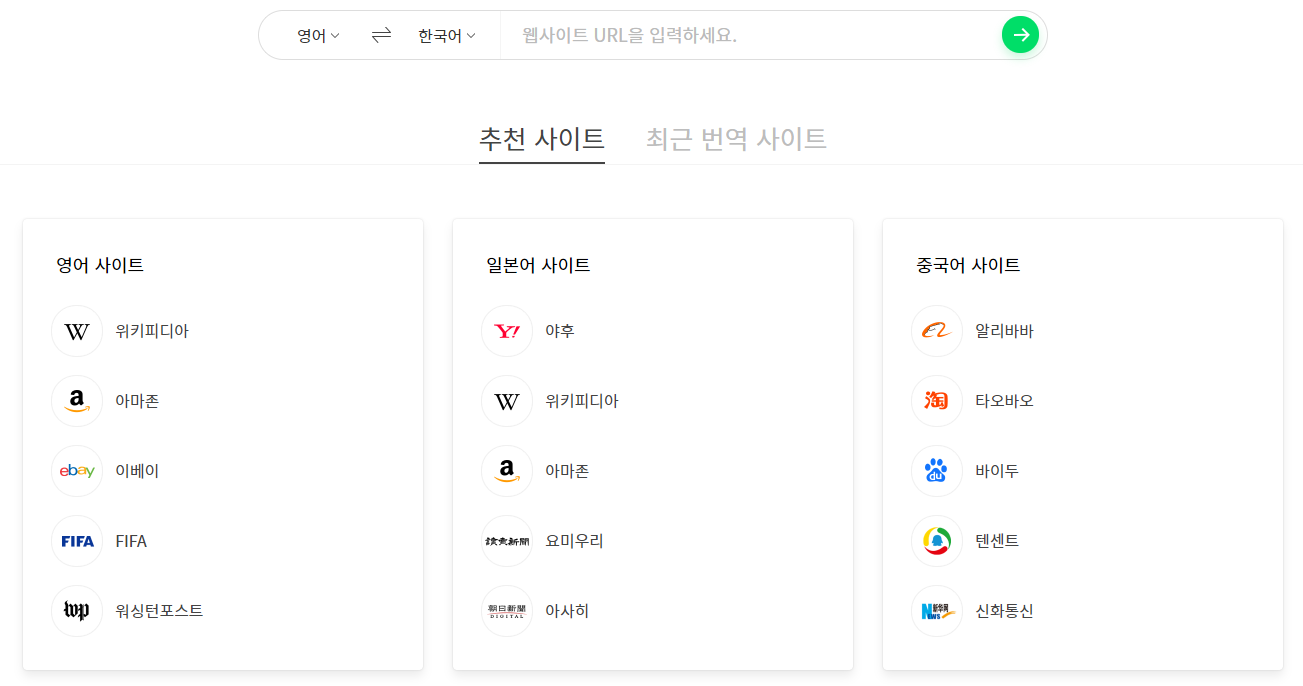 진짜 마지막으로 파파고 번역기에서는 웹사이트 번역을 하실 수 있습니다.