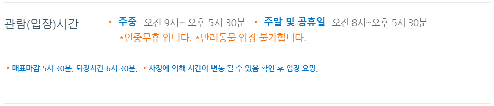 석굴암은 주중 오전 9시부터 오후 5시 30분까지, 주말 및 공휴일은 오전 8시부터 오후 5시 30분까지이며 연중 무휴입니다. 그리고 매표 마감은 5시 30분, 퇴장시간은 6시 30분이며 반려동물은 입장 불가합니다. 반려동물은 입장이 불가하니 참고하시기 바랍니다.