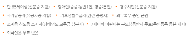 만 65세 이상, 장애인, 경주시민, 국가유공자, 기초생활수급자, 의무복무 중인 군인, 조계종 신도증 소지자, 7세 이하 어린이는 석굴암 입장료 면제 대상자입니다. 외국인은 면제가 되지 않으니 입장료를 지불하고 입장하여야 합니다.