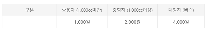 승용차는 1,000원, 중형차는 2,000원, 대형차는 4,000원입니다.