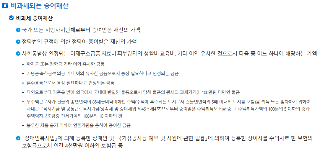 증여세율, 증여세 면제 한도액 설명은 마치도록 하겠고 마지막으로 비과세되는 증여재산 설명해드리겠습니다.