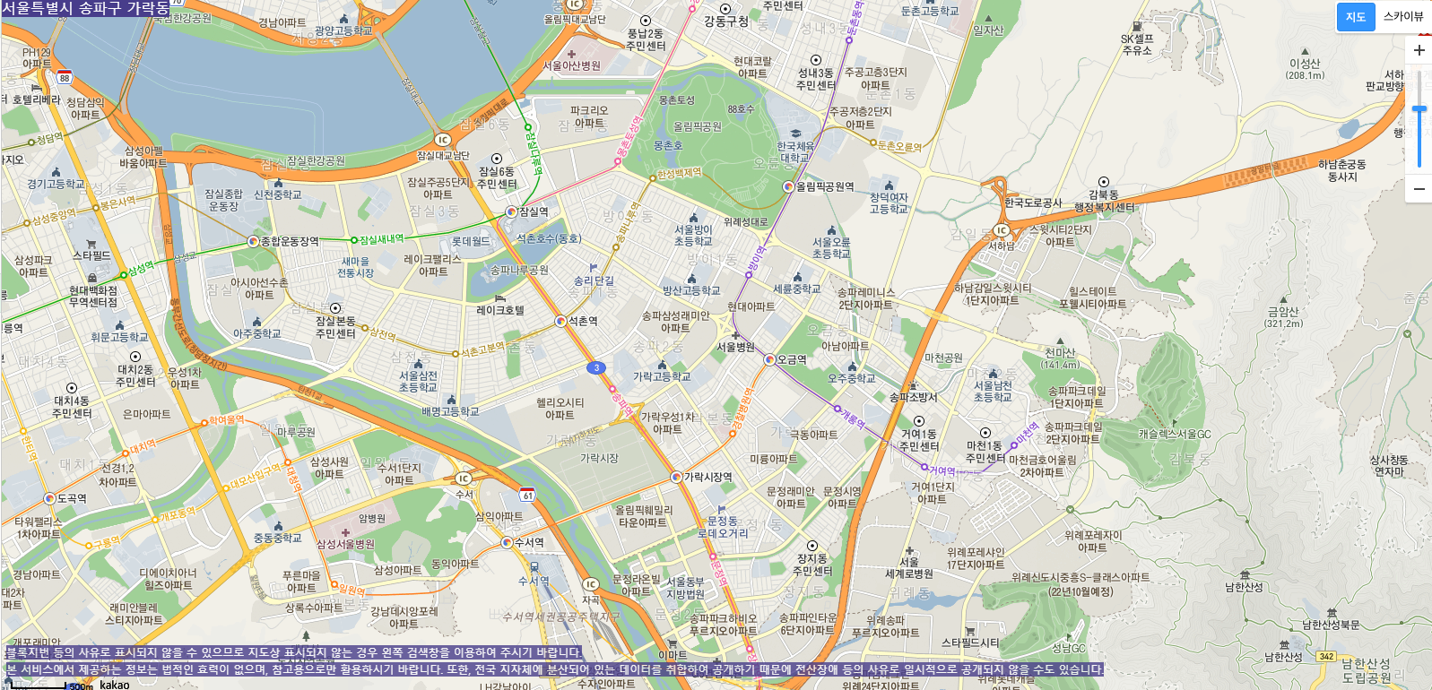 읍면동까지 선택을 하시면 지도가 조금 더 확대가 되실텐데 저는 송파구까지만 선택을 하였기때문에 지도를 조금 확대해보겠습니다.