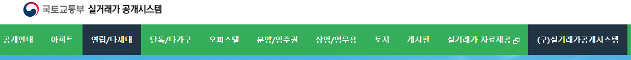 만약에 단독/다가구나 연립/다세대의 실거래가를 조회하려면 그 메뉴를 클릭하시면 됩니다.