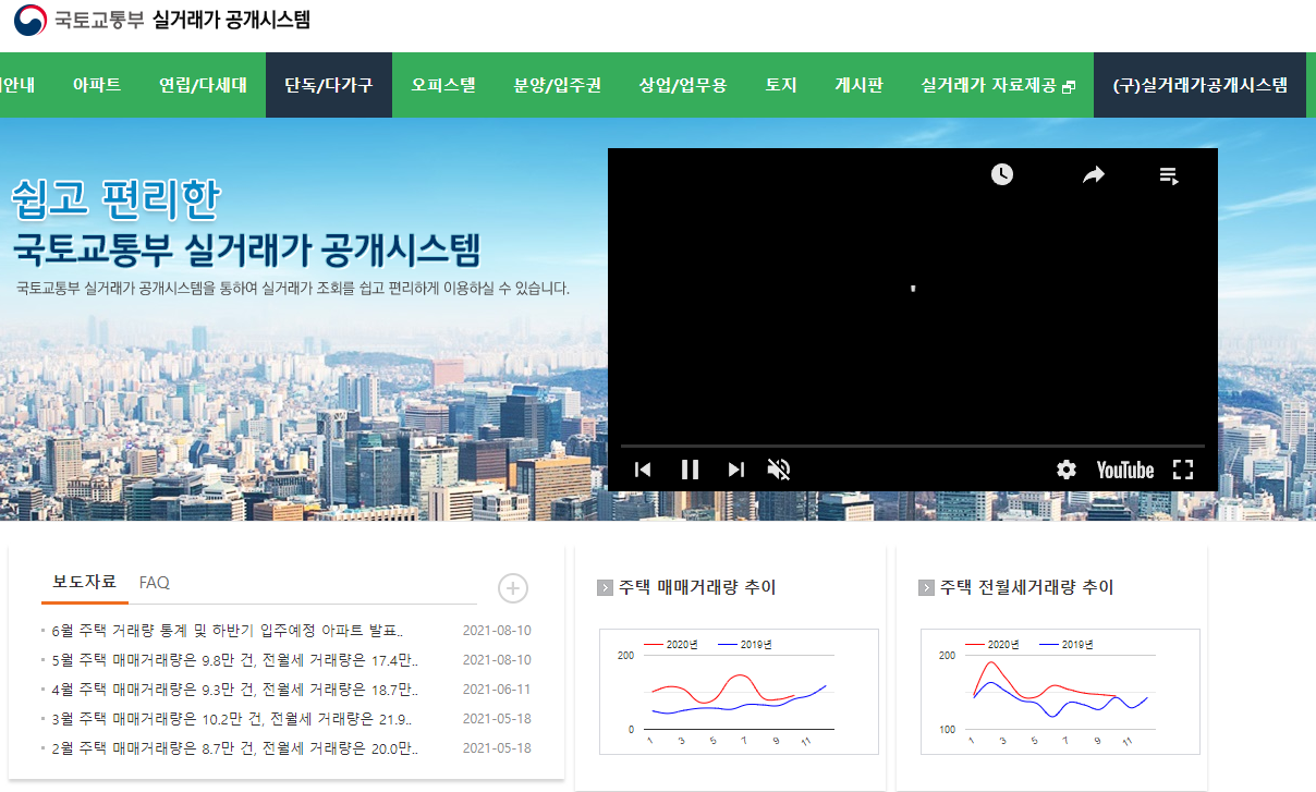 우선 국토해양부 아파트실거래가조회를 하기위해서는 국토교통부 실거래가 홈페이지에 접속하여야 합니다.