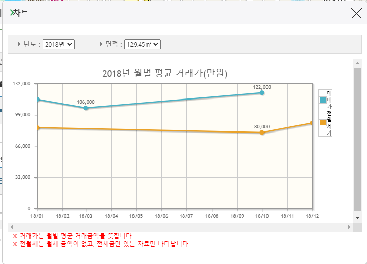 변경하면 이렇게 매매, 전월세 별로 실거래가를 확인하실 수 있습니다.