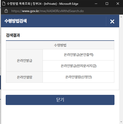 온라인 발급 본인출력을 선택하시면 됩니다.