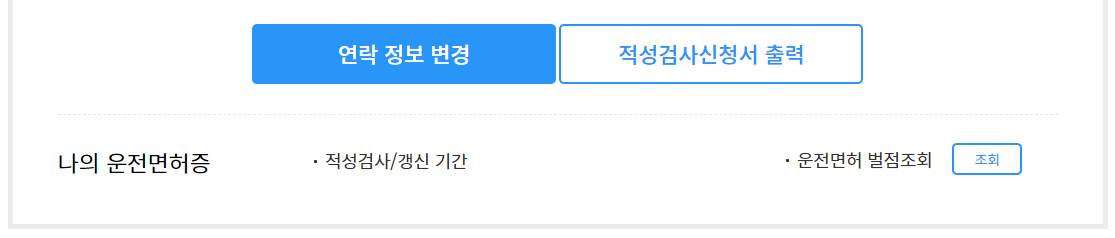 인증을 하시고나면 운전면허증 사진, 적성검사 갱신기간 등을 확인하실 수 있고 오른쪽 아래를 보시면 운전면허 벌점조회가 있습니다.