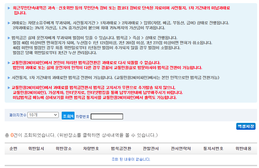 만약에 조회가 되지 않았다면 단속이 되지 않았다는 의미이며 시간차가 발생하실 수 있으니 만약에 단속이 된 것 같다면 다음날에 조회를 다시해보시기 바랍니다.