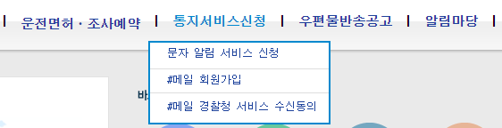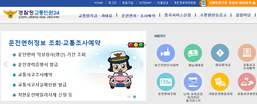 사이트에 접속하시면 교통민원과 관련된 여러가지 서비스들이 보일 것입니다.