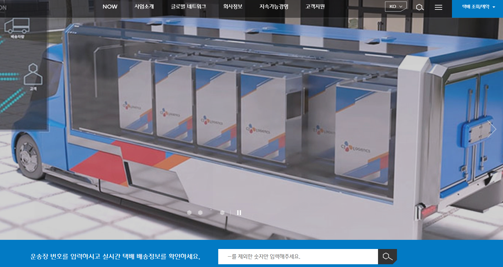 그리고 홈페이지 상단을 보시면 택배 조회/예약 버튼이 보이실텐데 클릭하시면 택배예약, 특송조회 등도 있습니다.